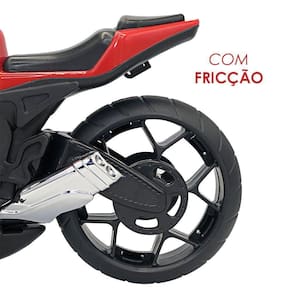 Feita para os fãs de motos esportivas, esse brinquedo é uma ótima escolha para presentear um amigo ou familiar! Com um design realista, inspirado em motos esportivas, essa moto é perfeita para estimular a imaginação, com detalhes cuidadosamente elaborados, como rodas esportivas, carenagem aerodinâmica, detalhes cromados e rodas com fricção para atingir altas velocidades, não só os pequenos pilotos vão adorar como também aqueles que amam colecionar, servindo como decoração para sua casa. Feita com materiais duráveis e de qualidade, a moto é perfeita para brincadeiras ativas, podendo ser usada em qualquer tipo de terreno, seja dentro ou fora de casa. -Não recomendado para crianças menores de 03 anos por conter partes pequenas que podem ser engolidas ou aspiradas -Roda não vira ESPECIFICAÇÕES: Material: Polipropileno e Adesivo Dimensões: Comprimento: 36cm x Alt.: 19cm x Larg.: 10cm Peso: Aprox. 385g Cores: Vermelho CONTÉM: SUPER MOTO 1600 ESPORTIVA COM RODAS COM FRICÇÃO - VERMELHO Registro Inmetro: 000430/2018