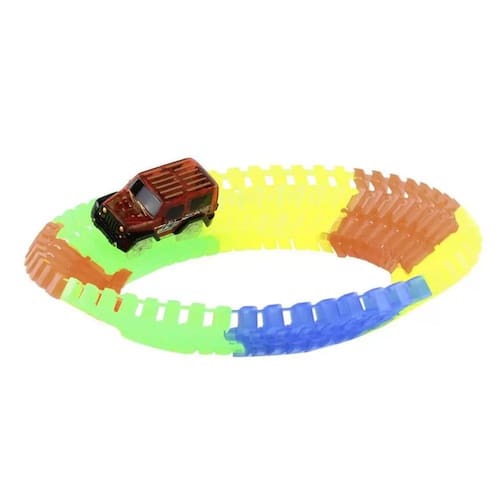 A Pista Fluorescente veio para alegrar as crianças que adoram brincar de carrinhos e que gostam ainda mais quando eles possuem pistas radicais e para criar super manobras A Pista vem acompanhada de um carrinho que acende as luzes e além disso é formado por diversas peças que se juntam e vão montando a pista da maneira que você preferir. Monte sua pista inclinada, ou até mesmo uma pista reta, onde tudo vai se criando conforme a sua imaginação. Aproveite e divirta-se enquanto cria pistas radicais para enfrentar diversas aventuras com os seus amigos. Utiliza 01 pilhas AA 1,5V (NÃO INCLUSAS) Código: 080327 Dimensões aprox. da embalagem em cm: 7x18x24 Peso liq. Aproximado do produto na embalagem: 192g Referência do Modelo: R3065 Certificado Inmetro: Sim Conteúdo da Embalagem: 56 Peças e 1 Veículo Composição/material: Plástico e componentes eletrônicos. Idade recomendada: a partir de 3 anos Garantia: 90 dias contra defeitos de fabricação pelo fabricante Imagens meramente ilustrativas. As cores e tonalidades podem variar.
