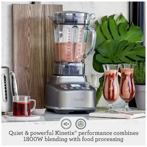Apresentamos o Liquidificador Breville Super Q, um liquidificador de qualidade comercial super rápido, mais poderoso e mais personalizado. Com o motor mais potente, 5 programas com um toque e 12 configurações de velocidade, garante texturas suaves e macias com menos ruído graças à tecnologia de supressão de ruído.