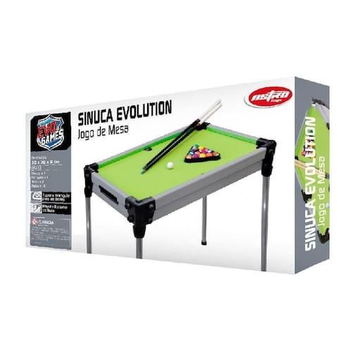 Super Sinuca Evolution - Astro ToysA Super Sinuca Evolution é o produto perfeito para quem busca momentos de diversão e descontração com amigos e familiares. Compita contra amigos e família, mostrando seus arremessos precisos. Reúna seus amigos e torne-se o campeão da super sinuca. Confira Este jogo de sinuca proporciona uma experiência imersiva e realista para os amantes desse esporte. Idade recomendada: A partir de 5 anos. Selo Inmetro: 005313/2023.Diferenciais:design moderno e elegante, que se destaca em qualquer ambiente.Fabricada com materiais de alta qualidade para garantir durabilidade e resistênciaFácil de montar e desmontar, facilitando o transporte e armazenamentoAcompanha todos os acessórios necessários para começar a jogar imediatamenteMais sobre o Produto:Ideal para reunir amigos e familiares para momentos de lazerContribui para o desenvolvimento da coordenação motora e habilidades estratégicasEstimula a socialização e a competitividade de forma saudávelProporciona horas de entretenimento garantido para pessoas de todas as idadesDicas de uso:Monte a Super Sinuca Evolution em um local plano e espaçoso para garantir uma experiência de jogo confortável.Utilize os acessórios fornecidos, como tacos e bolas, de acordo com as regras tradicionais da sinuca.Ficha Técnica:Marca: Astro Toys;Nome do produto: Super Sinuca Evolution;Idade recomendada: A partir de 5 anos;Selo Inmetro: 005313/2023. Homologação Inmetro: 0240/22-BQ-01 Marca: Não Informado