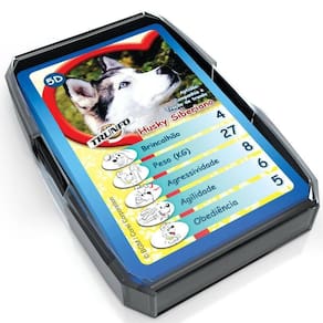 Super Trunfo caes de raça traz 32 cartas com imagens e informações de caes para uma disputa superdivertida Você compara sua carta com a do outro jogador. Mas escolha bem a característica que vai utilizar a cada rodada, pois, se sua carta ganhar, você fica com a carta do outro jogador; se perder, ele fica com a sua No final, vence quem ganha todas as cartas do jogo. Especificações: -faixa Etária: A partir de 7 anos Componentes: 1 Super Trunfo Cães de Raça 1 Participantes: 1 ou mais Certificação Inmetro:CE-BRI/ICEPEX-N 01264-25 - NM300-2004 OCP 0046 Outras InformaçõesNão recomendável para menores de 3 anos, por conter partes pequenas