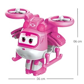 Marca: Super Wings Modelo: Transform a Bots Dizzy Cor: Rosa Personagem: Dizzy Tamanho: 06 x 06 x 05 cm Articulado: Sim Idade Mínima Recomendada: 4 Anos Garantia: 3 Meses