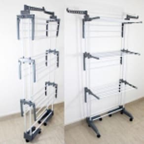 Características - 6 prateleiras- Dobrável para facilitar o armazenamento- 24 varetas- Equivale a 19 metros de varal em corda- Varetas em ferro com pintura isostática Ø 12mm que não deixam marcas nas roupas- Rodízios para facilitar o transporte- 2 portas cabides removíveis com espaço para 14 cabides Informações técnicas - Capacidade total de 40Kg de roupas- Dimensões montada (cm) 170 x 75 x 64- Dimensões montada fechada (cm) 170 x 75 x 14- Dimensões da embalagem (cm) 90 x 20 x 12- Peso da embalagem - 4Kg- Cor: Cinza e branco