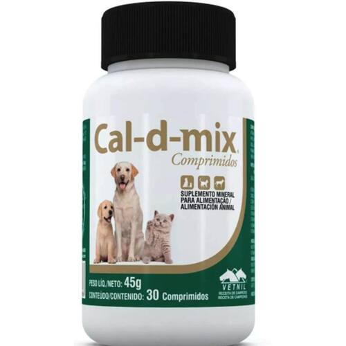 O Suplemento Vetnil Cal-D-Mix Frasco é um produto rico em cálcio, contendo os principais elementos para o crescimento ideal dos animais. Ele é um suplemento vitamínico e mineral, indicado para cães, gatos e mustelídeos em estado nutricional inadequado. Também indicado na suplementação de Cálcio, outros Minerais e Vitaminas em perfeito equilíbrio.