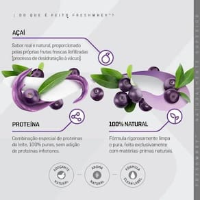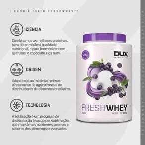 Suplemento Fresh Whey Protein 900g Dux Nutrition Sabor: Açai Fresh Whey 900g Fresh Whey DUX Nutrition é uma nova categoria de proteínas, totalmente naturais, feitas com frutas e nuts de verdade, que proporcionam sabores reais, com uma fórmula rigorosamente limpa e pura. Sua fórmula especial com 3 tipos de proteínas do soro do leite: concentrada, isolada e hidrolisada. Essa combinação traz o melhor de cada uma delas: sabor, pureza e qualidade. São 20g de proteína por dose, com alta qualidade e sabor delicioso. Fórmula rigorosamente limpa e pura, feita exclusivamente com matérias-primas naturais, sem ingredientes inferiores ou artificiais. Seguimos um padrão de excelência na escolha de cada proteína, cada fruta, cada ingrediente. As proteínas são os suplementos mais famosos e mais populares. É fácil entender por quê. A proteína é o alicerce nutricional do corpo, sendo encontrada nos músculos, ossos, pele, cabelos, e basicamente em todas as outras partes ou tecidos do corpo. Ela é feita de mais de 20 moléculas construtoras chamados aminoácidos, que participam de muitas reações químicas. Pelo menos 10.000 proteínas diferentes nos fazem como somos, e nos mantém assim. Experimente o que há de melhor com o Fresh Whey DUX Nutrition Benefícios: Sem adição de açúcares; Sem conservantes; 20g de proteína por dose; 4,5g de BCAAS; Sem espessantes; Sem estabilizantes; Sem ingredientes inferiores.
