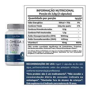 O Ômega 3 Ultra 1000Mg Epa 400Mg Dha 60 Caps - Lauton é um suplemento à base de óleo de peixe, rico em EPA e DHA, que auxilia na manutenção dos níveis saudáveis de triglicerídeos.