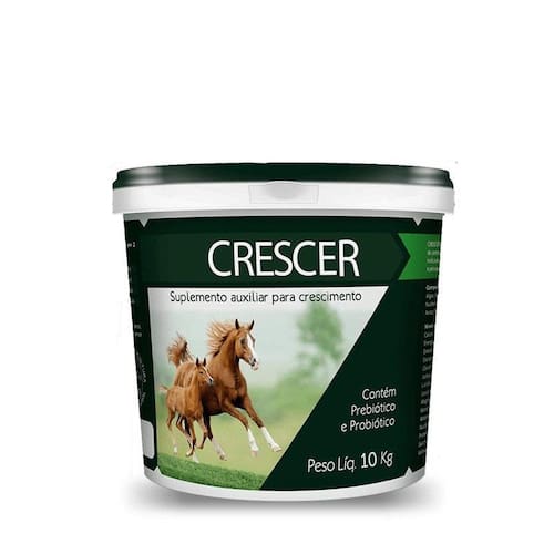 Suplemento Para Cavalos e Potros Crescer - 10 KgCrescer é um suplemento auxiliar para crescimento de equídeos. Rico em BCAA, L-Lisina, Nucleotídeos e enriquecido com M.O.S, prebiótico adsorvente de Micotoxinas e Pro-Sacc, probiótico à base delevedura viva Saccharomyces cerevisiae.Auxilia no desenvolvimento e crescimento dos animais jovens e na absorção dos nutrientes da dieta total.Crescer é indicado para animais em desenvolvimento, animais com perda de massa muscular e animais com baixa ingestão de proteínas.Modo de Usar:Adicionado sobre a ração, podendo ser dividido em 2 horários do dia:Potros até 6 meses: 50g/dia = 4 medidasPotros de 6 a 12 meses: 90g/dia = 6 medidasPotros de 12 a 18 meses: 120g/dia = 8 medidasPotros acima de 18 meses: 150g/dia = 10 medidasFabricante: Univitta