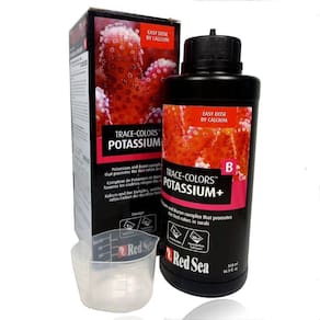Reef color b: um complexo de potássio e boro. Potássio desempenha um papel essencial no transporte denutrientes dentro do coral dos tecidos moles (incluindo os nutrientes fornecidos pelo zooxantelas). Potássio eboro afetar significativamente a alcalinidade dos tecidos moles no coral ea formação de aragonita em seu esqueleto. Potássio está relacionado com o vermelho cromo-proteínas.