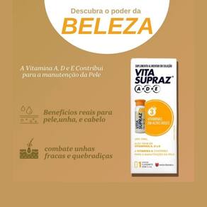 Suplemento sem Sabor Vitasupraz Caixa 3ml Brand VITA SUPRAZ Laboratorio UNIAO QUIMICA Controlado NãO Especificacao SUPLEMENTAçãO ALIMENTAR Suplemento sem Sabor Vitasupraz Caixa 3mlEm meio à rotina acelerada, garantir a ingestão adequada de nutrientes essenciais é um desafio. Vita Supraz A+D+E foi desenvolvido para complementar sua alimentação, fornecendo as vitaminas A, D e E em forma prática de gotas, facilitando a absorção e contribuindo para o bom funcionamento do organismo.Benefícios e Ações:Vitamina A Retinol : Auxilia na saúde da visão, imunidade e renovação celular.Vitamina D Colecalciferol : Contribui para a absorção de cálcio, fortalecimento ósseo e função imunológica.Vitamina E Tocoferol : Potente antioxidante que protege as células contra radicais livres.Composição: Óleo de girassol, acetato de racemo-alfa-tocoferol, palmitato de retinol, colecalciferol e conservante parahidroxibenzoato de metila .Modo de Uso: Adultos. Consumir conforme orientação .Advertências: Manter fora do alcance de crianças.Imagens ilustrativas. Consulte um de saúde antes do uso.Vita Supraz A+D+E - Nutrição essencial em gotas para seu bem-estar diário. Marca: Não Informado