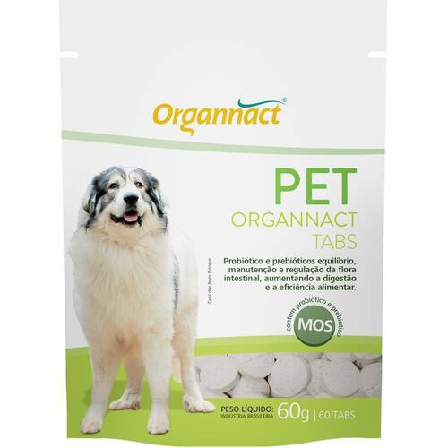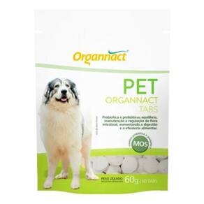 Suplemento Vitamínico Pet Organnact Tabs 60gr - Organnact Suplemento vitamínico aminoácido indicado para cães, contendo vitamina A, glutamina, vitaminas do complexo B, probiótico e prebióticos.