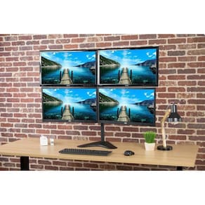 Indicado para quatro telas de 15 a 32 polegadas com padrão de fixação VESA 75x75 ou 100x100mm e com peso de até 8kg (peso de cada tela sem a base original).