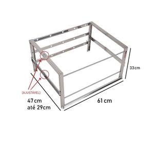 DIMENSÕES: Largura: 61cm Profundidade: 47cm com regulagem até 49cm Altura: 33cm Peso Bruto: 3 Kg