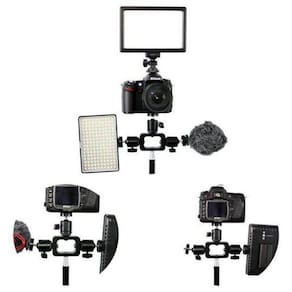 Suporte Adaptador Greika - FAN-3 O Suporte Adaptador Greika FAN-3 é um modelo em estrutura de metal e plástico, que possibilita ao fotógrafo o encaixe de até 3 acessórios fotográficos, uma vez que conta com um suporte retangular com 3 pinos fixados e 3 mini cabeças ball head de pino padrão, que fornecem acessibilidade a equipamentos com esse tipo de encaixe, como o exemplo de câmeras, microfones, iluminadores de led e muitos outros. Com uma separação entre duas partes, esse modelo de suporte pode ser com ou sem suas mini cabeças, uma vez que a retangular possui pinos, não sendo necessário o uso delas. As cabeças servem para criar uma melhor angulação ao acessórios, porém se não houver a necessidade, também é possível utilizar sem e deixar as cabeças fixadas externamente com outros acessórios, isso permite uma maior divisão da estrutura e acrescenta maior dinamismo no uso. Além disso, também possui um rosca inferior para fixar esse suporte em tripés que possuam pino 1/4. Características: Marca: Greika Modelo: FAN-3 Material: Metal Dimensões: 15,5 x 10 x 3cm CxAxL Peso: 360g Itens inclusos: 1x Suporte FAN-3 Obs: Imagens meramente ilustrativas. Câmera, lente e Acessórios Fotográficos não acompanham o produto. Marca: Não Informado