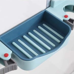 Ele possui dois apoios emborrachados para rodos e vassouras, uma saboneteira com revestimento removível