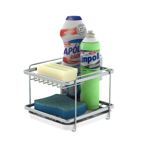 O Suporte Porta Detergente Sabão Esponja é ideal para otimizar o espaço da sua cozinha.