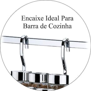 Para deixar sua cozinha elegante e com muita praticidade, essa peça é fundamental para a sua cozinha. O conjunto é composto por 1 suporte e 6 vidros e pode ser utilizado em barras tubulares ou de perfil chato. Além do tradicional tratamento superficial da Future - onde são aplicadas até 4 camadas de metal - os produtos são revestidos com uma camada extra do protetivo especial Rust Free, garantindo cores vivas e brilhantes, além de maior resistência contra ferrugem.