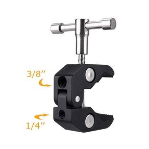 O Suporte Alicate Caranguejo Crab Clamps para Braço Articulado pode ser conectada no suporte rapidamente, e convenientemente instalado, Rosca 1/4 e 3/8 com Câmeras, Luzes, Flash, Monitores, Braços Mágicos e etc.Características: Leve e durável. Braçadeira ajustável para Câmera Pequeno, fácil de carregar, ideal para fotografia, vídeos e iluminação. Parte de trás com Rosca 1/4 e 3/8 para fixação de acessórios Projeto manopla rotativa ajustável, aperto alcance da câmera, acessório e filmadora. com alavanca de catraca para travamento e liberação rápida e segura. Adequado para braço de equipamentos fotógrafos e câmera de fixação, display LCD, monitores, braços Mágicos, etc.
