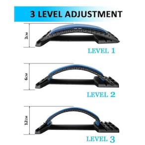 Recurso - Cor: preto e azul. - Material: ABS. - Tamanho: 37 x 24,3 x 1,1 cm. - Arco de ajuste de vários níveis para maior alcance. - Aumenta a amplitude de movimento e flexibilidade, alivia a dor nas costas. - Ajustável e portátil. Você pode estender a qualquer hora e em qualquer lugar. - Feito de plástico ABS premium para durabilidade e longevidade.