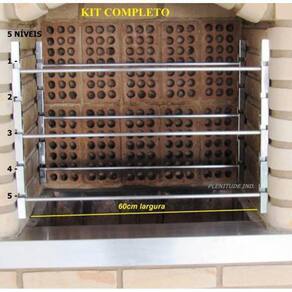 O kit de suporte serve para apoio de grelhas e espetos, pode ser instalado em churrasqueiras de alvenaria, gourmet (com parede), tijolinhos . As barras podem ser serradas se a churrasqueira for menor na largura com uma serrinha manual.