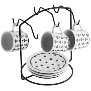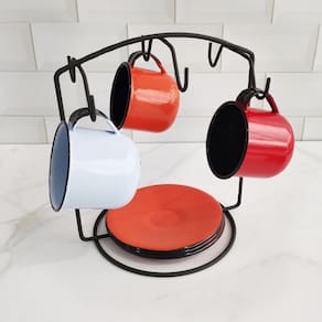 Suporte Aramado Porta 6 Xícaras e Pires Organizador Bancada Schmitt #Suporte de xícaras e pires #Cozinha organizada #Design moderno Garantia: 3 meses / Peso: 170g / Cor: Grafite ou Cromado / Ref: 15991 Dimensões: 21cm (C) x 14,5cm (L) x 23cm (A). Espaçamento entre as hastes para xícara: 6,5cm. Área de uso: 16,5cm (C) x 13,5cm (L) x 14,5cm (A) Distância dos pires até nas xícaras: 14,5cm. * Não acompanha as xícaras e pires. Cuidados: - Não lavar com materiais abrasivos; - Limpar com pano úmido e detergente neutro. Detalhes do produto: - Comporta: seis xicaras e pires. Material: - Aço carbono: acabamento cromado. Uma mesa posta com tudo organizado é o que mais desejamos! O porta xícaras vai deixar sua mesa muito elegante, produzido em preto fosco ou na cor cromado, você escolhe qual vai combinar com sua decoração! O organizador é ideal para deixar as xicaras em ordem e ainda tem design versátil e prático que lhe permite fácil acesso para pegar e manusear as xícaras.