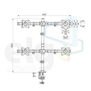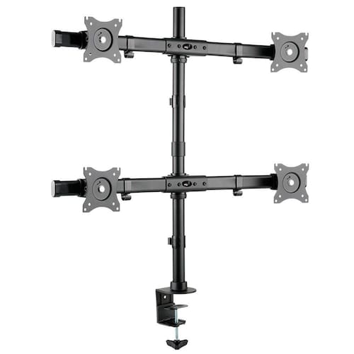 Indicado para quatro telas de 15 a 27 polegadas com padrão de fixação VESA 75x75 ou 100x100mm e com peso de até 8kg (peso de cada tela sem a base autêntico).