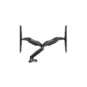 Suporte articulado de mesa com pistão a gás e regulagem de altura para dois monitores ultrawide / led / plasma / lcd / 3d de 17 a 27 polegadas - f160n preto. O f160n é um suporte de mesa para 02 dois monitores simultâneos desenvolvido com sistema de braço articulado duplo com amortecedor a gás pistão que permite movimentos suaves para um perfeito ajuste de direção e altura. Com o mínimo esforço, posicione a tv de 17 a 27 polegadas da maneira que desejar, sem a utilização de ferramentas. Design compacto e retrátil indicado para tvs com peso, sem a base , entre 2 e 6,5kg cada, tipo com padrão de fixação vesa horizontal x vertical 75x75 ou 100x100mm e largura máxima de 90cm cada monitor, normalmente encontrado em televisores de 17 a 27 polegadas. Função estender, girar e inclinar. Suporte full motion com giro horizontal até 90 graus para a direita e esquerda, regulagem de altura vertical de 16 a 41cm, rotação da tela até 360 graus posição retrato / paisagem e inclinação tilt de +90 a -45 graus, cobrindo praticamente todos os pontos de visualização, ideal para uso em ambientes de trabalho, videoconferências, entretenimento ou jogos. O suporte de mesa articulado f160n é desenvolvido em alumínio com pintura epóxi eletrostática de alta resistência, aliando durabilidade, leveza e excelente acabamento. De fácil montagem, possui organizador de cabos e garantia de 01 ano. - vesa é a distância entre as 4 furações localizadas atrás da tv. - o suporte f160n é compatível com tvs maiores que 27" desde que o peso, sem a base , seja entre 2 a 6,5kg, possua padrão de fixação vesa 75x75 ou 100x100mm hxv e largura até 90cm cada monitor. - 02 formas de fixação inclusos no kit acessórios: tipo morsa com abertura até 10cm ou serra copo parafuso m10 . - após o monitor estar fixado ao suporte, ajuste a pressão do pistão a gás.