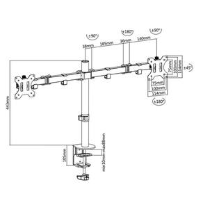 Indicado para uso de 2 telas de 13 a 32 polegadas com padrão de fixação VESA 75x75 ou 100x100mm (HxV) e com peso de até 8kg (cada tela).