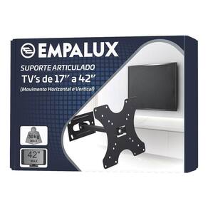 Suporte Articulado Para Tv De 17'' A 42'' Empalux Indicado para tvs de tela plana de LED, LCD de 17 à 42. Instalação em superfície firme, como concreto, paredes de tijolo maciço e de madeira maciça. Compatível com padrões VESA 7575, 100100, ou 200200 mm. Peso máximo de 30KG.