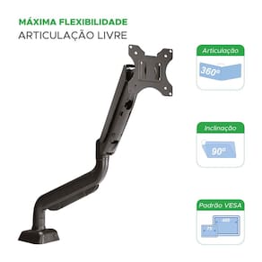 O suporte PX-F80M é uma solução prática e ergonômica para quem utiliza um monitor LED/LCD de 10 a 35 polegadas. Com sistema de pistão a gás, ele permite movimentos mais suaves e precisos, oferecendo inclinação de até 90 graus e articulação de 360 graus para ajuste ideal da posição de trabalho. Compatível com o padrão VESA, o suporte é robusto, suportando até 9 kg. Sua estrutura atende à NR17, proporcionando conforto e ergonomia. Especificações Técnicas: - Modelo: PX-F80M - Compatibilidade: Monitores de 10 a 35 polegadas - Padrão VESA: 75 x 75 e 100 x 100 - Capacidade: Suporta até 9 kg - Inclinação: Até 90 graus - Articulação: 360 graus - Pistão a Gás: Movimentos suaves e precisos - Ergonomia: Atende à Norma Regulamentadora NR17 - Conteúdo da embalagem: 4 parafusos M4 x 12 mm 4 parafusos M5 x 12 mm 1 parafuso M6 x 12 mm 1 parafuso M8 x 20 mm Chaves allen para montagem - : 5 anos