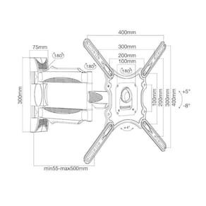 Suporte articulado indicado para tvs plasma/3d/lcd/led com peso até 35 kg e compatíveis com padrão de fixação vesa 100x100, 200x100, 200x200, 200x300, 300x200, 300x300, 400x200, 400x300, 400x400 mm hxv , normalmente encontrado em televisores de 26 a 65 polegadas.