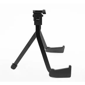 Suporte portátil para guitarra e baixo. Dados Técnicos: - Peso kg : 0,410 - Capacidade de Carga kg : 5 - Embalagem C x L x A / cm : 4 x 17,5 x 38 - Altura cm : 24 - Largura cm : 22 - Comprimento cm : 26 - Material: Aço / Plástico - Características Especiais: Totalmente retrátil, produto compacto que não requer ajustes. Ean: 7898939972719