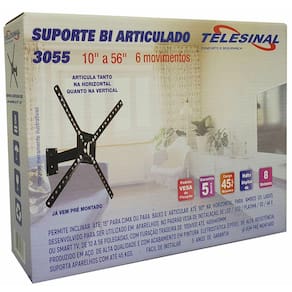 COMPRE DE QUEM FABRICA E TENHA A CERTEZA DA COMPRA CERTA. PERMITE ATÉ 6 TIPOS DE MOVIMENTOS DIFERENTES. INCLINA ATÉ 16" PARA CIMA OU PARA BAIXO E ARTICULA ATÉ 180º NA HORIZONTAL, PARA AMBOS OS LADOS. DESENVOLVIDO PARA SER UTILIZADO EM APARELHOS NO PADRÃO VESA DE INSTALAÇÃO, DE LED / LCD / PLASMA / 3D / 4K E OU SMART TV, DE 10 A 65 POLEGADAS, COM FURAÇÃO TRASEIRA DE 100x100 ATÉ 400x400MM. PRODUZIDO EM AÇO DE ALTA QUALIDADE, COM ACABAMENTO EM PINTURA ELETROSTÁTICA (EPÓXI). SUPORTA APARELHOS COM ATÉ 45 KGS. FÁCIL DE INSTALAR. 5 ANOS DE GARANTIA. JÁ VEM PRÉ MONTADO.