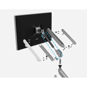 A placa vesa de liberação rápida torna a instalação e remoção do monitor rápida e fácil.