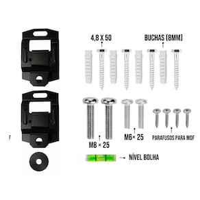 -Jogo de parafusos para instalação em parede ou em painel de madeira