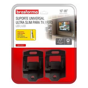 Suporte brasforma sbrub851 universal ultra slim televisão Marca - suporte de tv: brasforma Modelo - suporte de tv: sbrub851 Lugares de montagem - suporte de tv: parede O suporte fixo universal da brasforma proporciona uma visão frontal, é fácil de instalar, permite engate rápido e é indicado para tv led, lcd, plasma, 3d e smart tv de 10 a 85 polegadas. Possui trava de segurança, dispositivo basculante para fácil manuseio dos cabos. Acompanha parafusos e buchas para painel de madeira. É o acessório ideal para você que deseja espaço e organização na sua casa. Suporta até 100kg e você pode instalar com praticidade sua tv na parede. Fácil de instalar O padrão vesa padronizado permite que você saiba a distância entre os orifícios na parte traseira da tela, para que você possa escolher a montagem que melhor se adapta a esse tamanho. Este produto tem uma montagem variada para que você possa colocá-lo com segurança. Características: -marca: brasforma -modelo: sbrub851 - suporte universal -atende a maioria das tvs de lcd e led de 10 a 85 25cm - 216cm -ideal para visão frontal -carga máxima: 100 kg -2 pontos para fixação entre a tv e o suporte -desenvolvido em aço carbono de altíssima resistência -engate rápido -trava de segurança -fácil manuseio dos cabos -distancia da parede: 3 cm Conteúdo da embalagem: -suporte universal -manual e gabarito para montagem -jogo de parafusos para instalação em parede ou em painel de madeira -parafusos para tv m6 x 20mm; m8 x 20mm Observações: - verifique se a superfície de instalação apresenta resistência suficiente para uma instalação segura. -fique atenta para a carga máxima indicado para o suporte. - aconselhamos que a instalação seja realizada por um da área. - verifique se a furação da sua tv é compatível com o suporte. Imagens meramente ilustrativas Marca: Não Informado Ean: 7896689113895