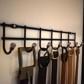 Suporte Cabideiro Multiuso de Parede com 7 Ganchos para Pendurar Cintos Gravatas Lavanderia Preto.