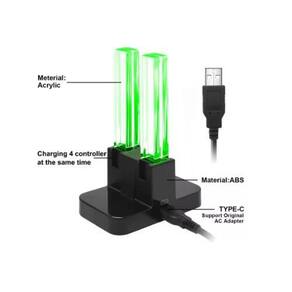 Compatível com os controles nintendo switch joy-con Pode carregar 4 controles joy-cons ao mesmo tempo Feixes de luzes em acrílicos coloridos, a luz é vermelha quando o joy-con está carregando, torna-se verde quando a carga está totalmente carregada Novo design com botão interruptor, quando seus controles estão totalmente carregados, você pode desligar a luz de acrílico Material: abs + acrílico Tensão de entrada: typc-c 5v dc Corrente de carga: 200ma