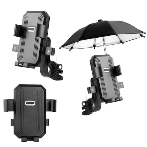 Chega de preocupações com sol forte ou chuva inesperada durante seus trajetos! Nosso suporte de celular com mini guarda-chuva é o acessório inteligente e prático que protege seu smartphone enquanto você pedala ou pilota!