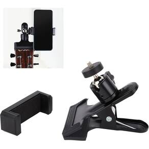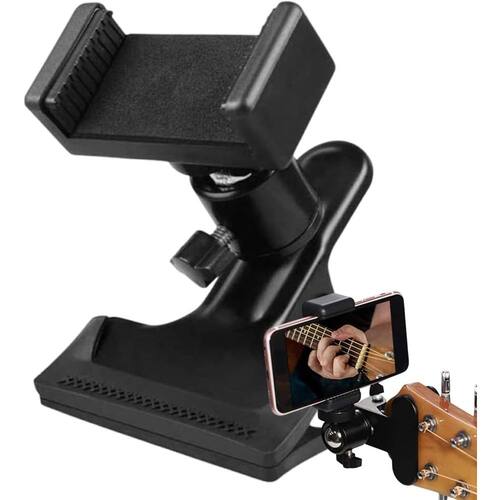Suporte de celular perfeito para instrumentos de cordas, mas que também pode ser utilizado onde quiser. Ele é ótimo para gravações e estudos, é versátil, podendo girar o celular 360° na horizontal e 180° na vertical. Mantem bem firme no instrumento sem tremer a sua câmera.