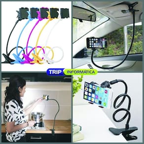 Com o suporte articulado flexível, você pode ajustar livremente o melhor ângulo de visão. Hastes e fixador emborrachados, para não arranhar ou danificar onde colocar o suporte.