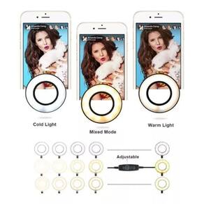 Suporte celular ring light usb luminária led para youtubers Descrição Solução ideal para você que fica até tarde estudando, trabalhando, fazendo lives ou vídeos. O ring light mais vendido nos market places está com um proço mais que especial enquanto durarem os estoques. Ring light completo suporte celular maquiagem live stream youtuber Iluminador ring light suporte live stream celular com controle faca vídeos com qualidade ou tire ótimas fotos de selfie com este suporte ring light. Acessório perfeito para criar vídeos para etc. Hastes flexíveis que podem dobrar para qualquer forma, suporte de rotação do smartphone gira 360 graus. Ajuste para qualquer ângulo para obter uma iluminação perfeita. 1. Suporte flexível e ajustável: suporte para celular de 360 graus, livre para ajustar qualquer ângulo que desejar, para uma visão conveniente, tirar fotos ou gravar vídeos. 2. Brilho ajustável: branco frio, branco natural, amarelo quente. Ele será útil sempre que você precisar de mais luz para fazer as fotos, fazer vídeos, ler livros e transmitir 3. Suporte universal de telefone celular: a largura deste suporte de telefone celular é de 2,28 polegadas, no mínimo, até 3,15 polegadas, no máximo, será compatível com a maioria dos telefones inteligentes. 4. Luz led usb powered: conecte a uma porta usb e trabalhe com vários dispositivos. Você será capaz de desfrutar da luminária a qualquer momento livremente 5. Suporte de grampo sturdy: o corpo de liga de alumínio facilita o processo, ajustando livremente o comprimento da barra. 6. Portátil: alongado e dobrável, para armazenamento conveniente. Fácil desmontar. Produto: Material ring light: polipropileno, ferro e componentes eletrônicos Material do suporte: metal articulável e polipropileno Possui 12 leds Potência: 15w Temperatura do led: regulável branco quente, natural e frio Temperatura da cor: 3200k até 5500k Ajuste de intensidade da luz de 10% até o máximo 100% Tamanho de 9 cm de diâmetro do iluminador Comprimento do cabo de energia: 1,5 metros aproximadamente. Contém: 1x suporte com anel luz Marca: Não Informado