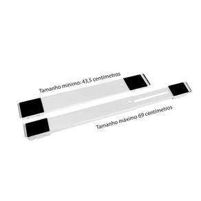 - Medida regulável, você poderá escolher a medida do suporte partindo de 43,5 cm até 69 centímetros. Ou seja, você poderá colocar ele em 50cm, ou em 60cm. Certo Dentro do mínimo e do máximo. Ótimo para móveis muito grandes ou muito pequenos