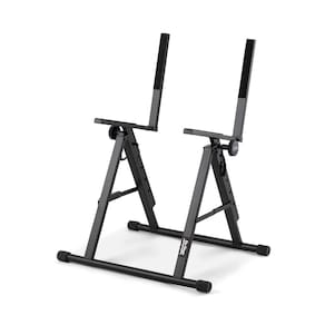 - Ajustável. Os braços de suporte ajustam-se em altura de 43 a 61 cm para permitir a direção precisa do som para uma ampla variedade de amplificadores. As configurações de altura são fixadas com botões de aperto e pinos de travamento. O acolchoamento antiderrapante nos braços protege os amplificadores de arranhões e aumenta a tração para garantir a estabilidade.