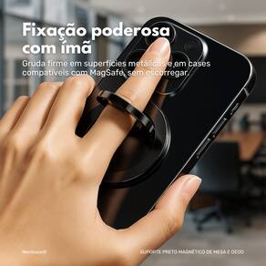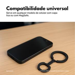 Compatível com MagSafe, oferece encaixe firme e seguro, tanto no dedo quanto como apoio de mesa.Uso