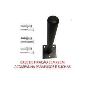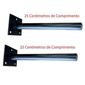 Dados Técnicos: - Produzida em Aço Galvanizado; - Dimensão: 25cm - Base de fixação: 3,0mm x 80mm x 80 mm - Diâmetro do Tubo: 25 mm 2,5 cm - Cor Preta Conteúdo: - 02 de suportes com parafusos e buchas de fixação em concreto.