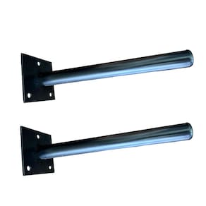 Dados Técnicos: - Produzida em Aço Galvanizado; - Dimensão: 25cm - Base de fixação: 3,0mm x 80mm x 80 mm - Diâmetro do Tubo: 25 mm 2,5 cm - Cor Preta Conteúdo: - 02 de suportes com parafusos e buchas de fixação em concreto.