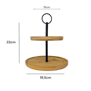 Suporte para Doces e Petiscos veio para estar presente nos melhores momentos. Com 2 andares, ou seja com duas bases redondas, uma menor e outra maior, ele é perfeito para evidenciar os alimentos dispostos nele. Sua estrutura é metálica, garantindo sustentação ao suporte e as duas bases são feitas de Bambu, material conhecido por possuir agentes fungicidas e bactericidas, deixando seus alimentos livres de fungos e bactérias. Com dois andares espaçosos, este suporte oferece ampla capacidade para apresentar uma variedade de alimentos. Seu design em níveis permite uma exibição elegante e acessível, tornando seus quitutes o destaque da mesa.