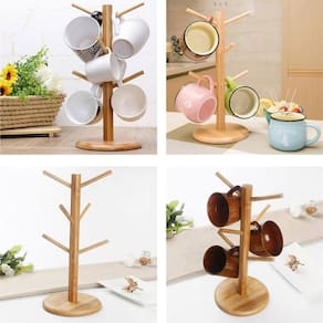 - Confeccionado em Bambu - Dimensões totais: 15,5 x 35 x 15,5cm largura x altura x profundidade - Desmontável - 6 Ganchos para pendurar xícaras / canecas - Ganchos que suportam até 1kg