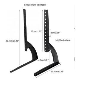 Soporte Base para TV de 37 a 75 pulgadas.Este soporte es muy útil a la hora de poder colocar el televisor fijo en alguna mesa, es muy buscado cuando las personas dejan por mucho tiempo su televisor pantalla plana colocado con un soporte en la pared y pierden la base de fabrica del televisor, y a la hora de colocarlo en algún otro lugar sin necesidad de abrir agujeros en la pared y realizar trabajos complejos de instalación, la mejor opción es comprar esta base para televisor.Esta base suporta televisores de entre 37 a 75 pulgadas y es de altura ajustable, gracias a su material de metal de alta calidad le brinda mucha firmeza a esta base para su tv, la cual también viene con todos sus parafusos para su rápida instalación.Características- Suporta televisores de 37 a 75 pulgadas- con material de metal de alta calidad- Com altura ajustável- viene con sus parafusos para su instalación