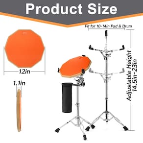 - Suporte de bateria resistente: o suporte de caixa possui um tripé robusto com suporte duplo e cesta ajustável para acomodar almofadas de bateria ou tambores de 25 a 35 cm de diâmetro. Ajusta-se facilmente à sua altura preferida (de 36,8 cm a 58,4 cm) para acomodar treino em pé ou sentado para apresentações ao vivo e estúdios de gravação